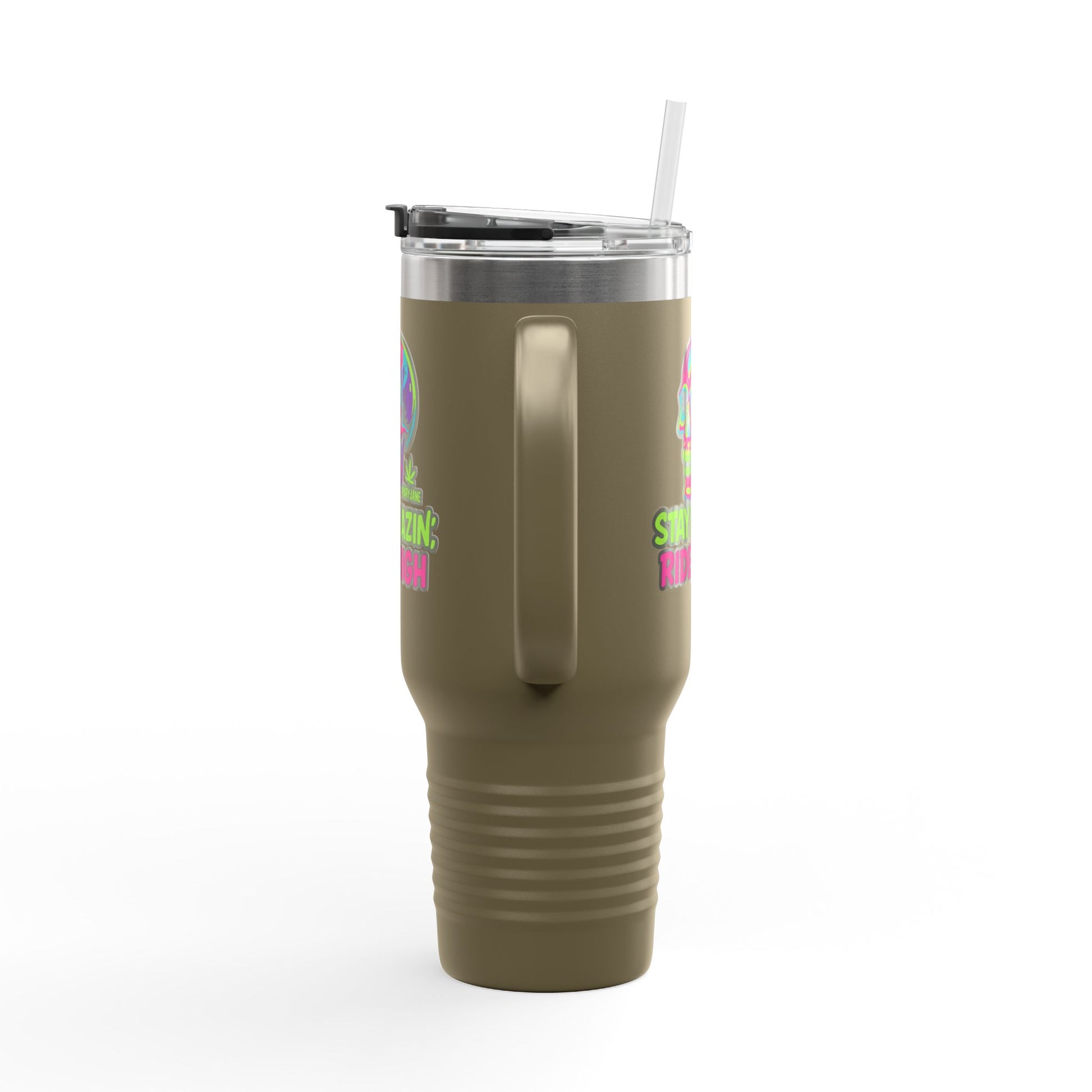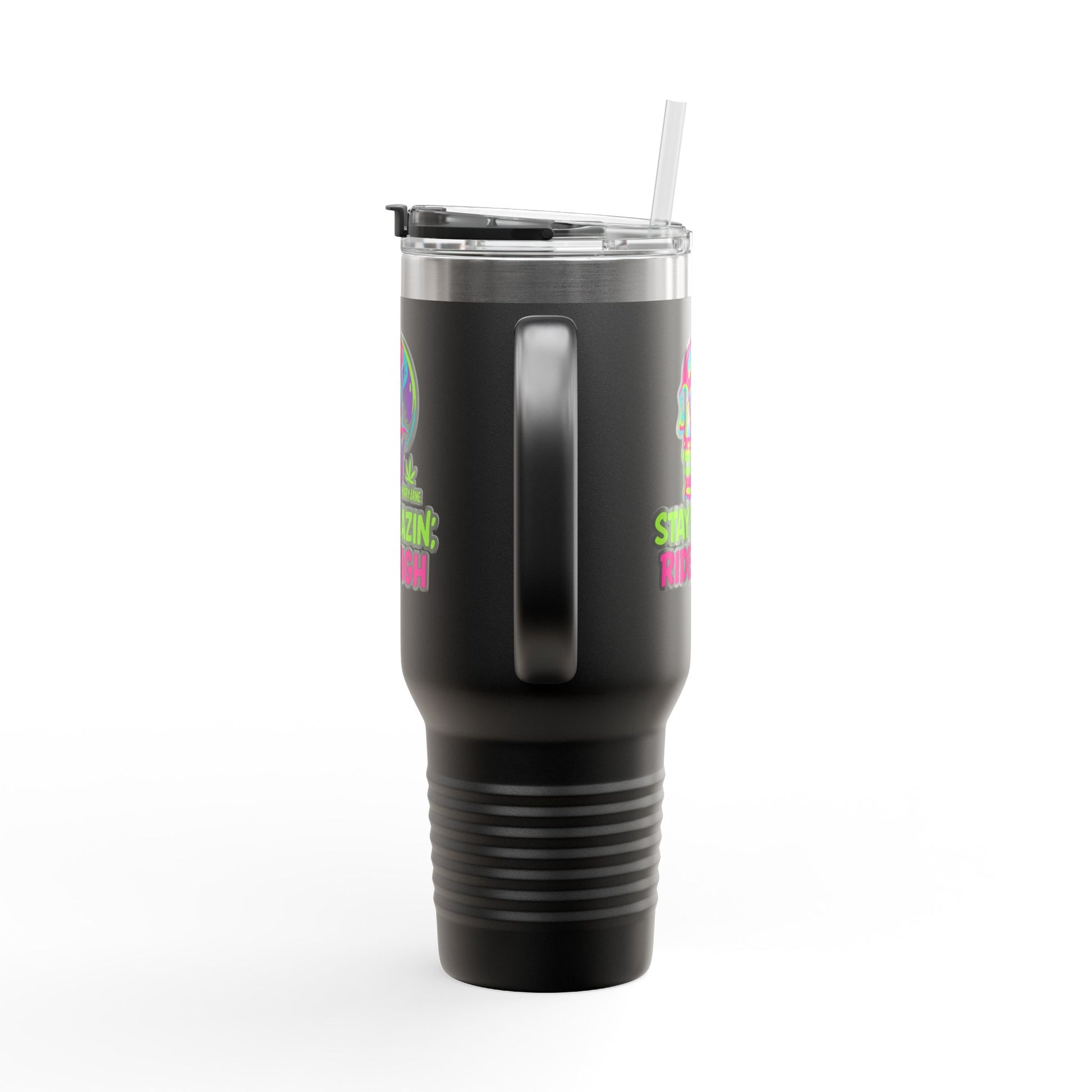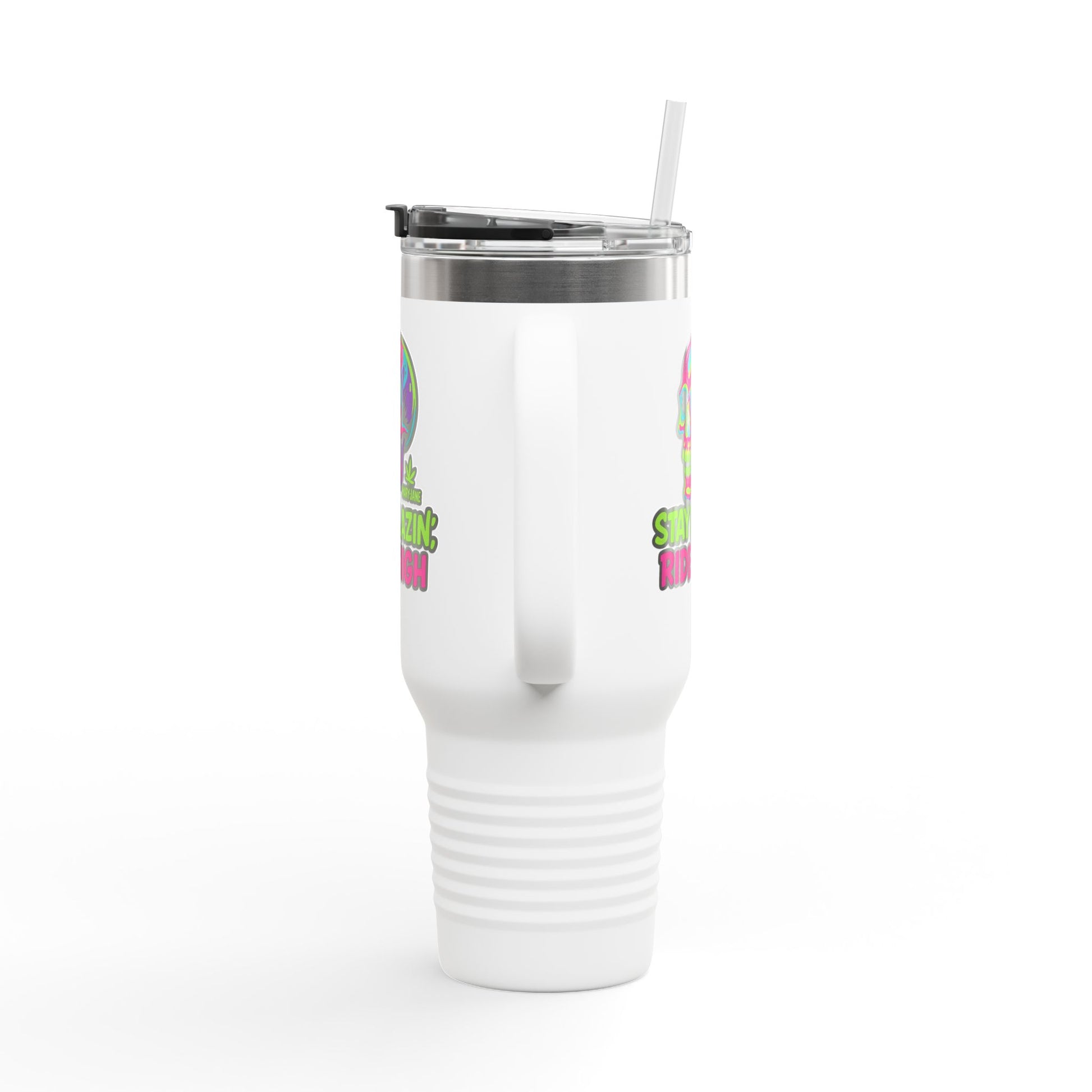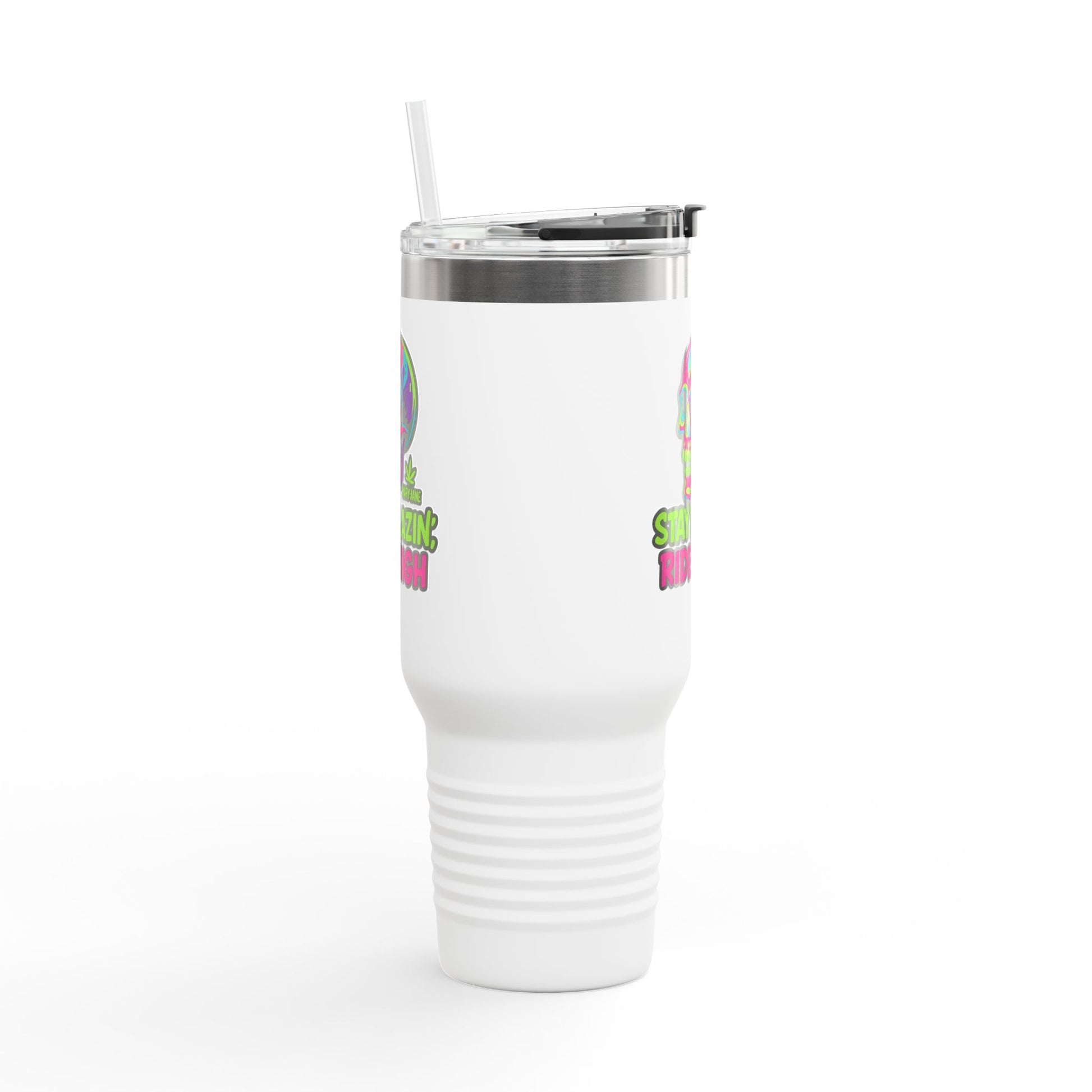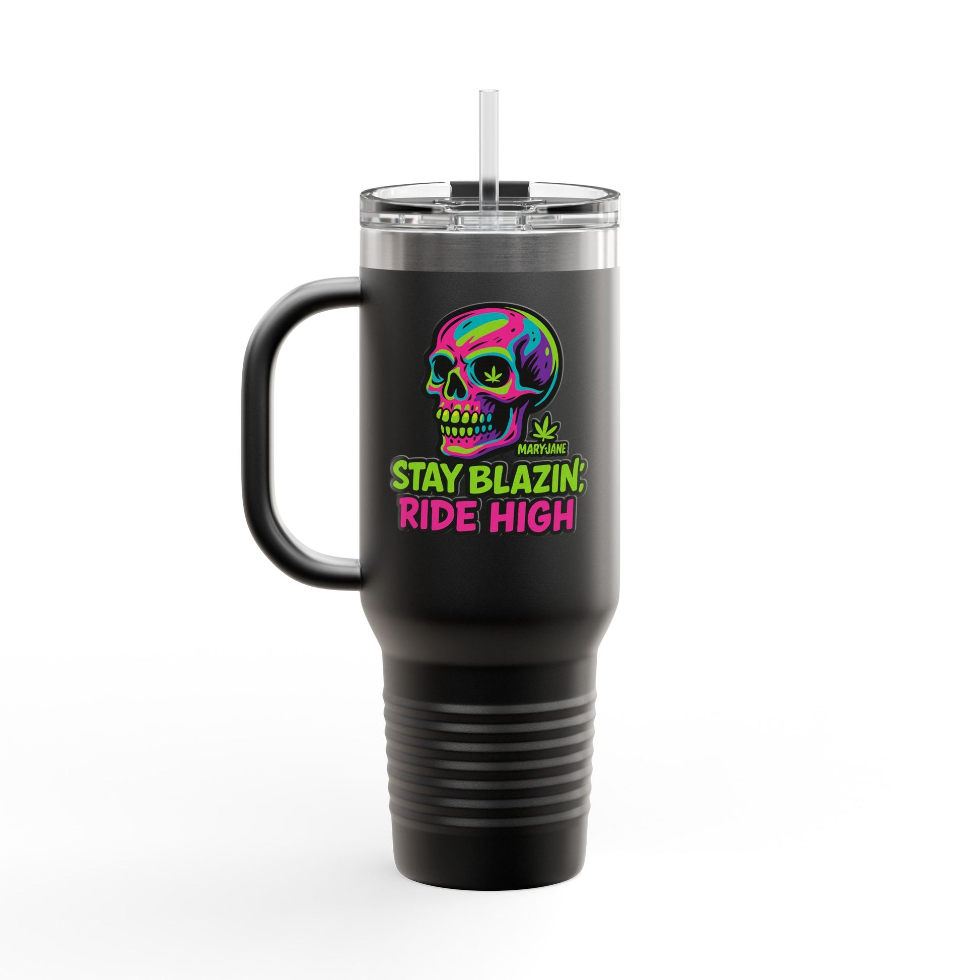 Insulated Travel Mug, Stay Blazin' Ride High Skull Design, 40oz Coffee Cup, Perfect for Cannabis Lovers, Fun Gift for Birthdays, Road Trips