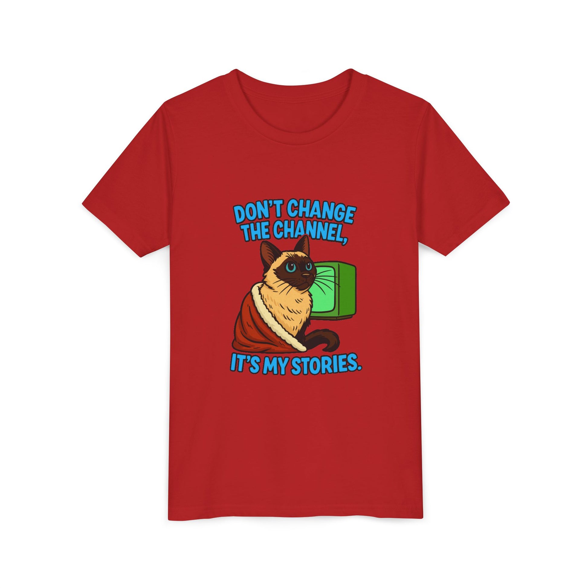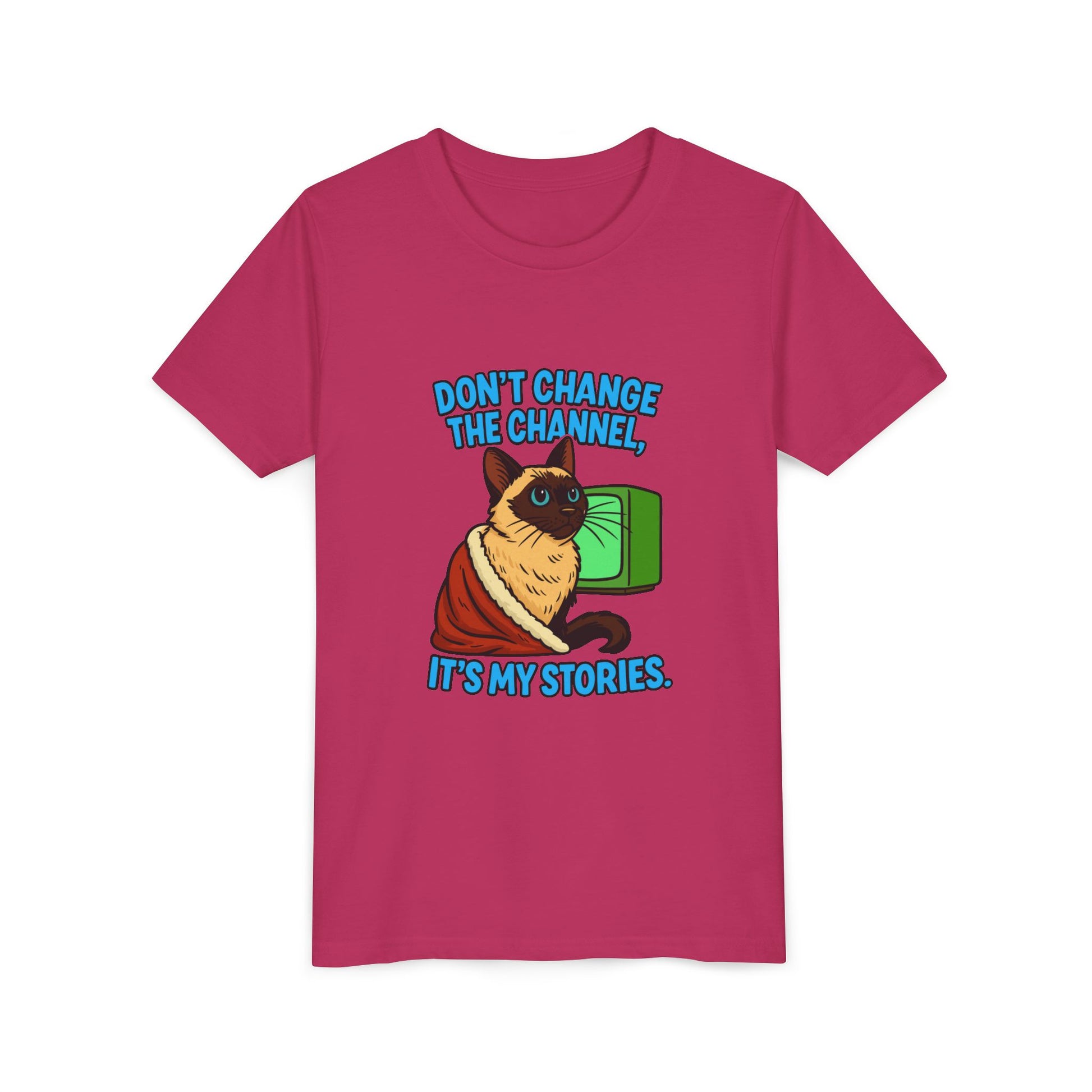 Sassy Cat Youth Tee - "Don’t Change the Channel, It’s My Stories"